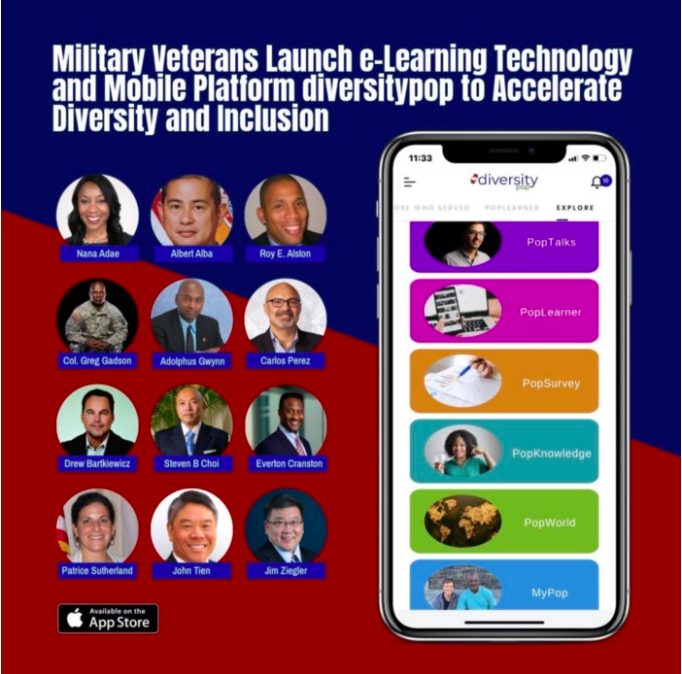 Twelve veterans have come together to found a mobile app called “diversitypop” to address the issues of diversity and inclusion, racial equality and political uncertainty. The co-workers range from a Rhodes Scholar to West Point and Naval Academy graduates, according to a media release.
